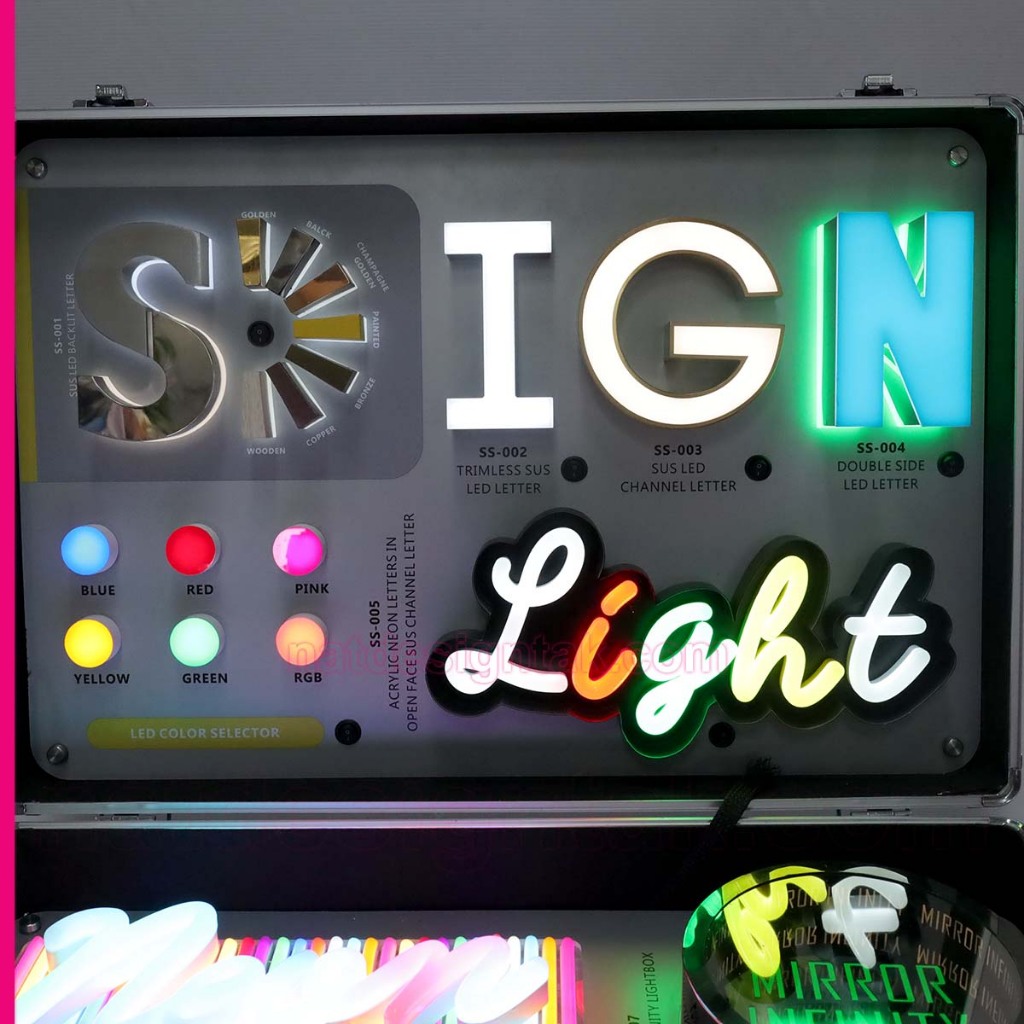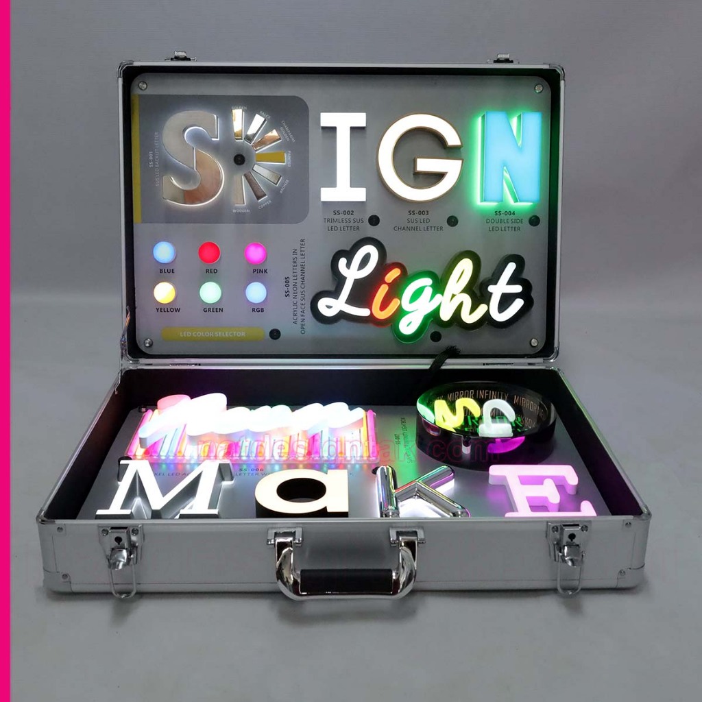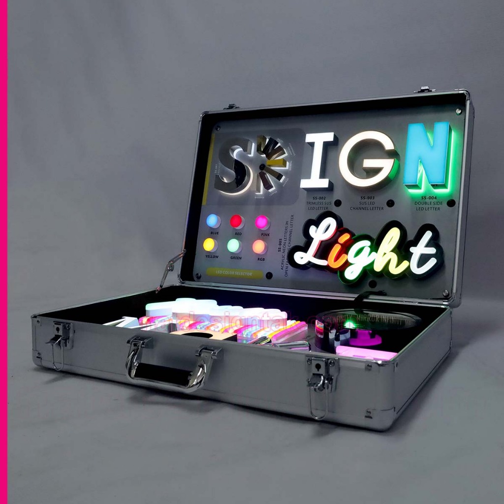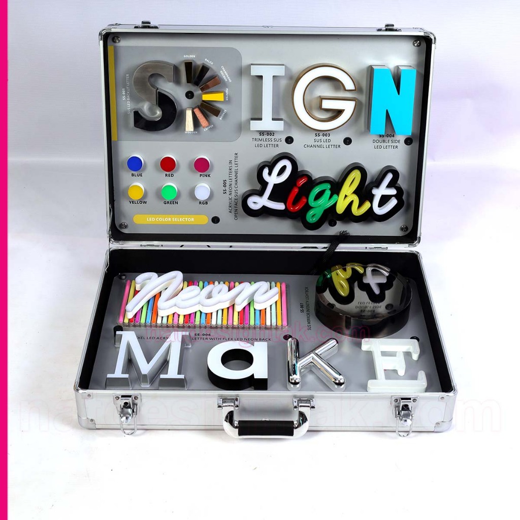 กระเป๋าแนะนำวัสดุ ชิ้นงานกระเป๋าสำหรับการแนะนำวัสดุต่างๆ ที่นำมาผลิตเป็นตู้ไฟ ตัวอักษรป้ายไฟต่างๆ เหมาะสำหรับร้านทำป้ายที่ต้องการแนะนำวัสดุต่างๆให้กับลูกค้าได้เข้าใจ ตามด้วยที่สามารถต่อไฟให้เห็นชิ้นงานตัวอักษรได้อย่างชัดเจน ชิ้นงานมีทั้งความสวยงาม พรีเมียม แข็งแรงโดดเด่น พกพาวัสดุจำนวนมากไปไหนมาไหน ได้ง่ายกว่าปกติ จัดเก็บเป็นกระเป๋าอย่างสวยงาม