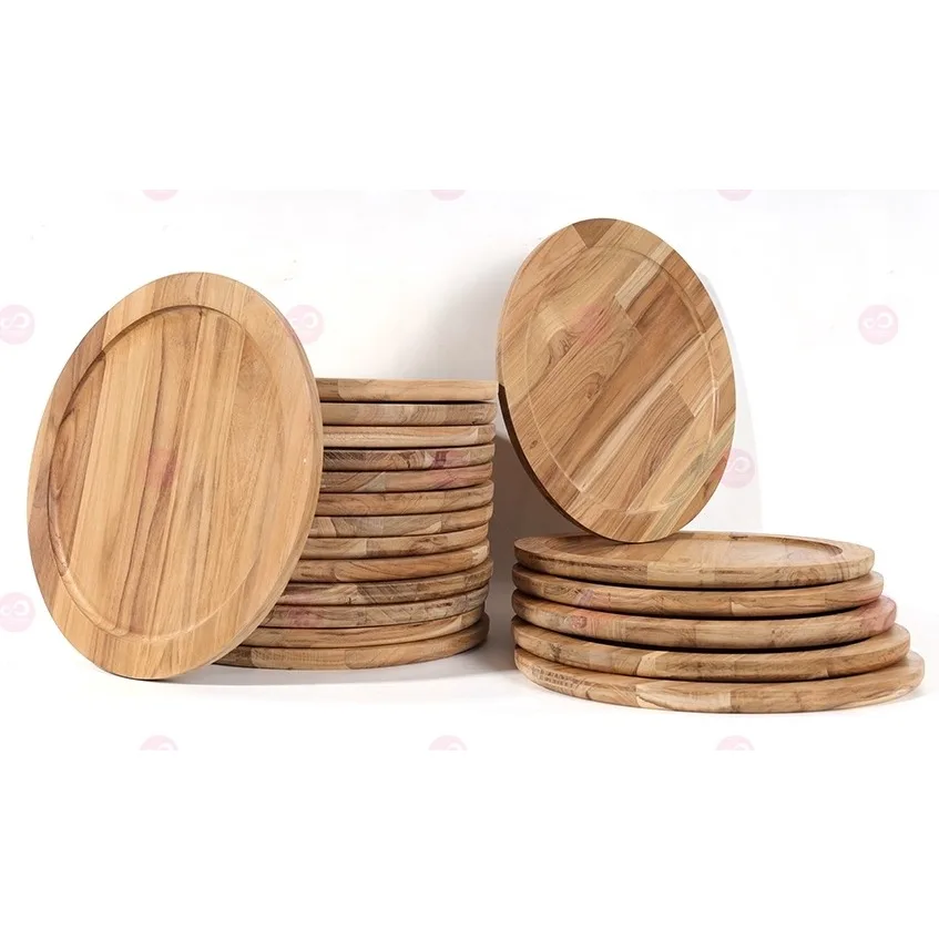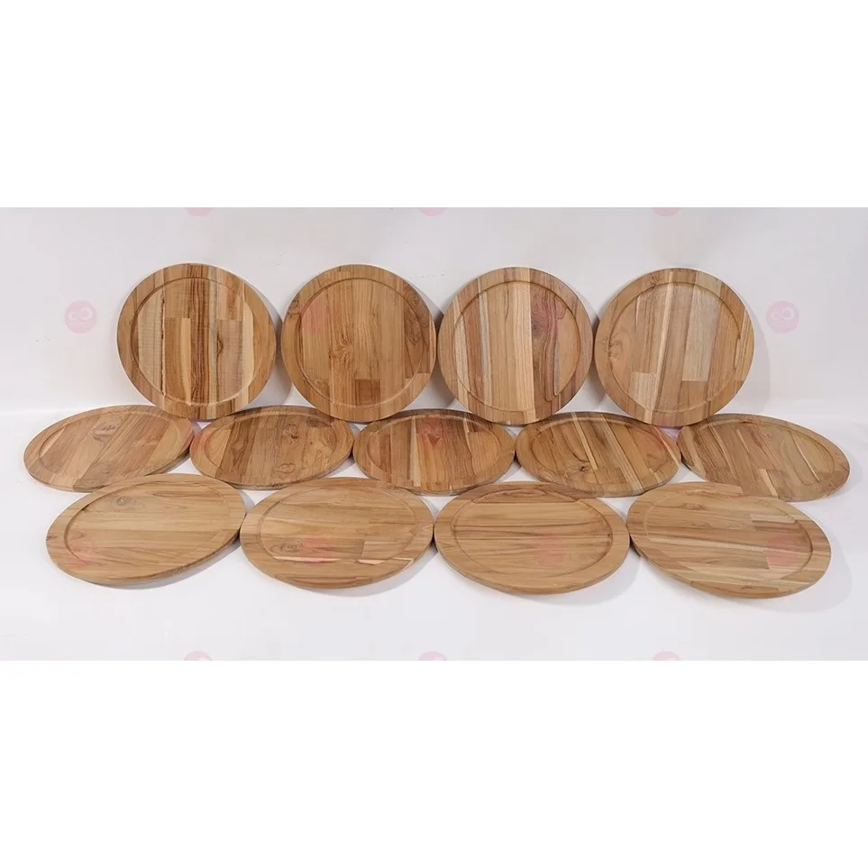ลดล้างสต๊อก! ถาดไม้วงกลม และเคลือบไม้สำหรับใช้กับอาหารได้อย่างสวยงาม ชิ้นงานเป็นชิ้นงาน ถาดไม้สักคุณภาพดี แข็งแรง ทนทาน หรูหรา สามารถใช้งานได้นาน